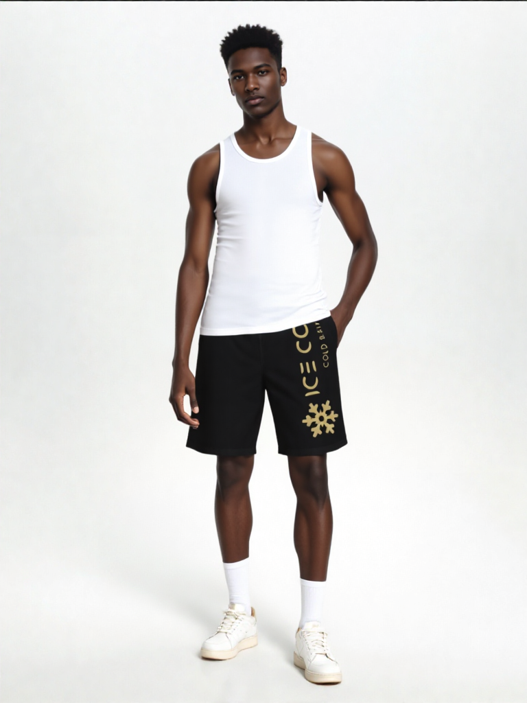 board shorts for men. Made with light, breathable polyester fabric, these shorts feature 2 side pockets for daily convenience, an elastic waistband, and a black drawstring rope.